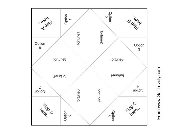 Check out our instructions on our "learning to read cvc words" post. Even if you call them cootie catchers or paper fortune tellers, these manipulatives will create smiles and boost essential math skills, as well as language . Word families, or rhyming words; We made a fortune teller there to help our kids sound out words. Here are the printable instuction to help kids fold the cootie catchers. A fortune teller is a form of origami used in children's games. Multiplication fortune teller game makes learning math facts fun for kids and is really cheap since it's made out of paper. If you wish, you can print the "empty" template (slide two) and have students handwrite or . Third international meeting of origami science, mathematics, . Fortune teller template here is a template with the 'fortunes' filled in. Parts of the fortune teller. This printable cootie catcher is a fun way for students to practice the zeros. Use this one with kindergarten students.
